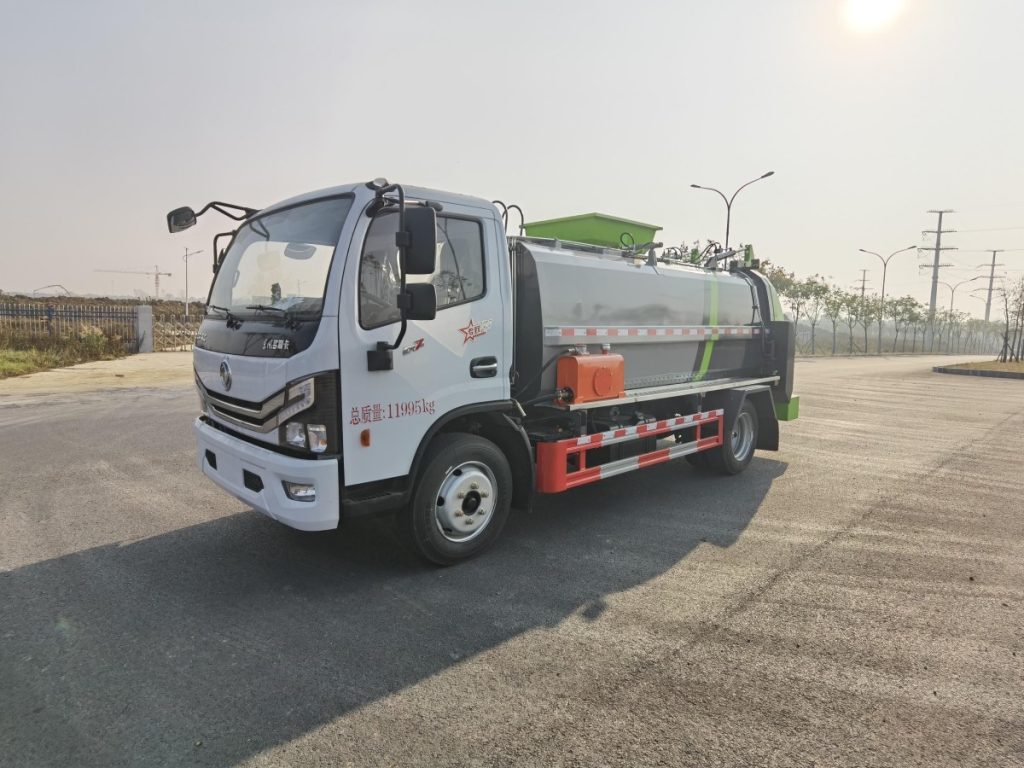 2. The body is made of high-quality carbon steel, with a thickness of 4mm at the bottom and 4mm on the sides. The body is divided into two compartments: the upper compartment is for solid waste, and the lower compartment is for settling wastewater. The upper part of the wastewater tank is a filter net (made of stainless steel), used to collect the liquid after solid-liquid separation. The upper front part of the body is a freshwater storage tank, used for cleaning vehicles, etc.