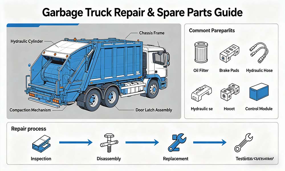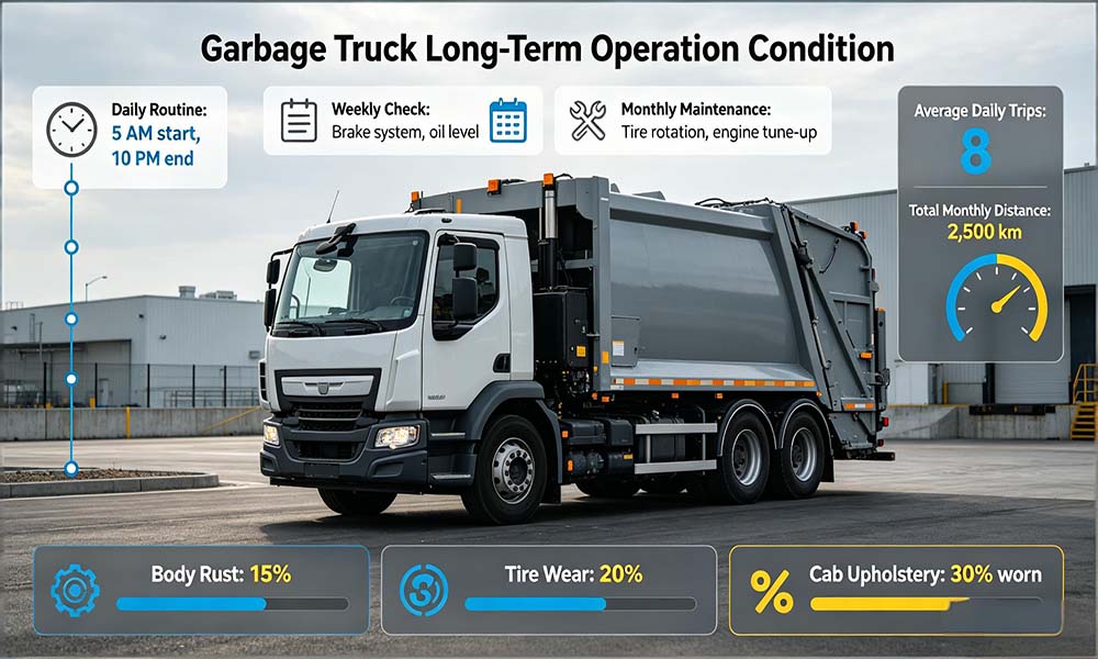 Garbage trucks are exposed to heavy loads, harsh environments, and continuous operation. Regular maintenance helps: