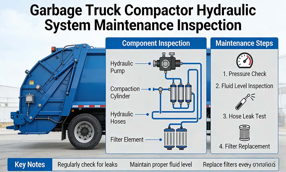유압 시스템은 쓰레기 수거 트럭 압축기의 핵심 동력원입니다. 작업자는 안정적인 성능을 보장하기 위해 유압 부품을 정기적으로 점검해야 합니다.